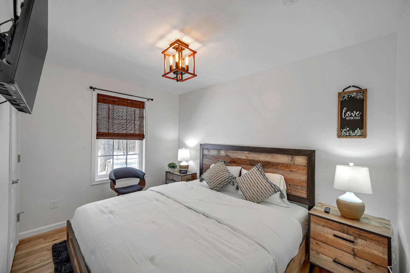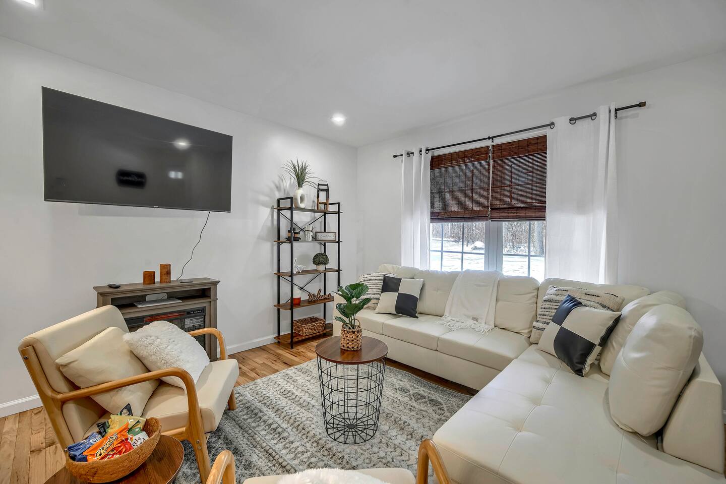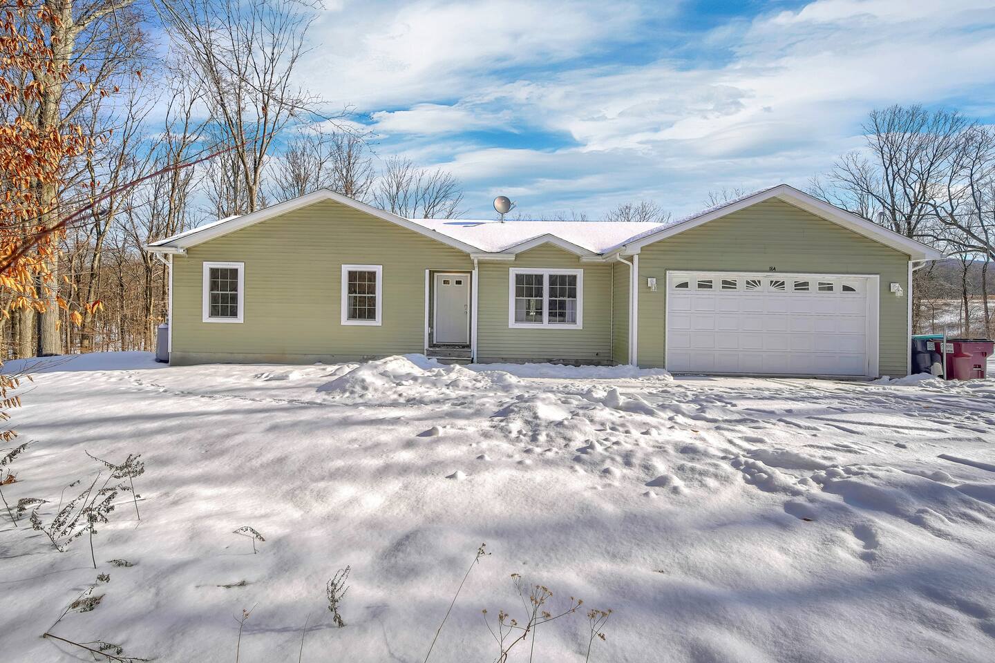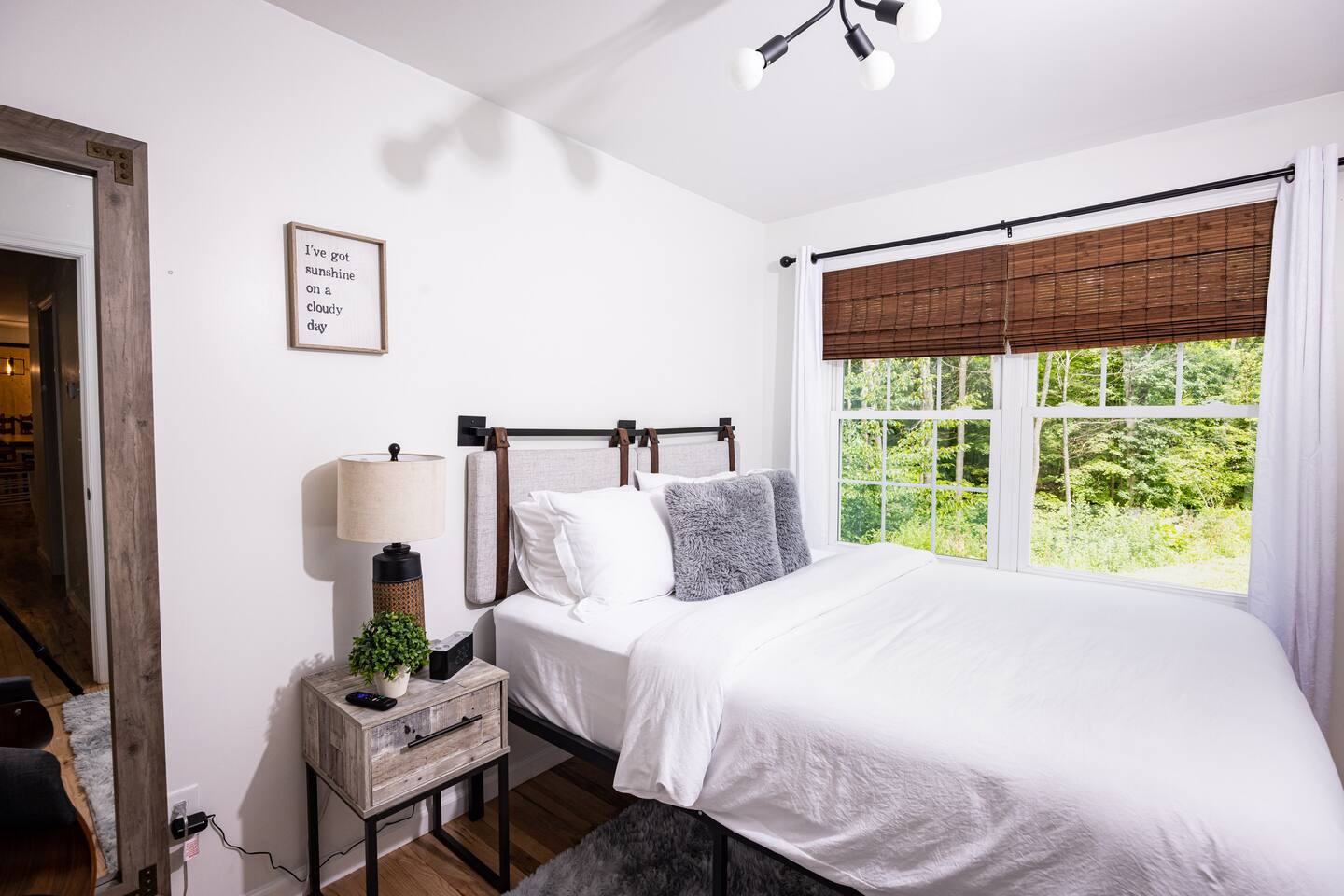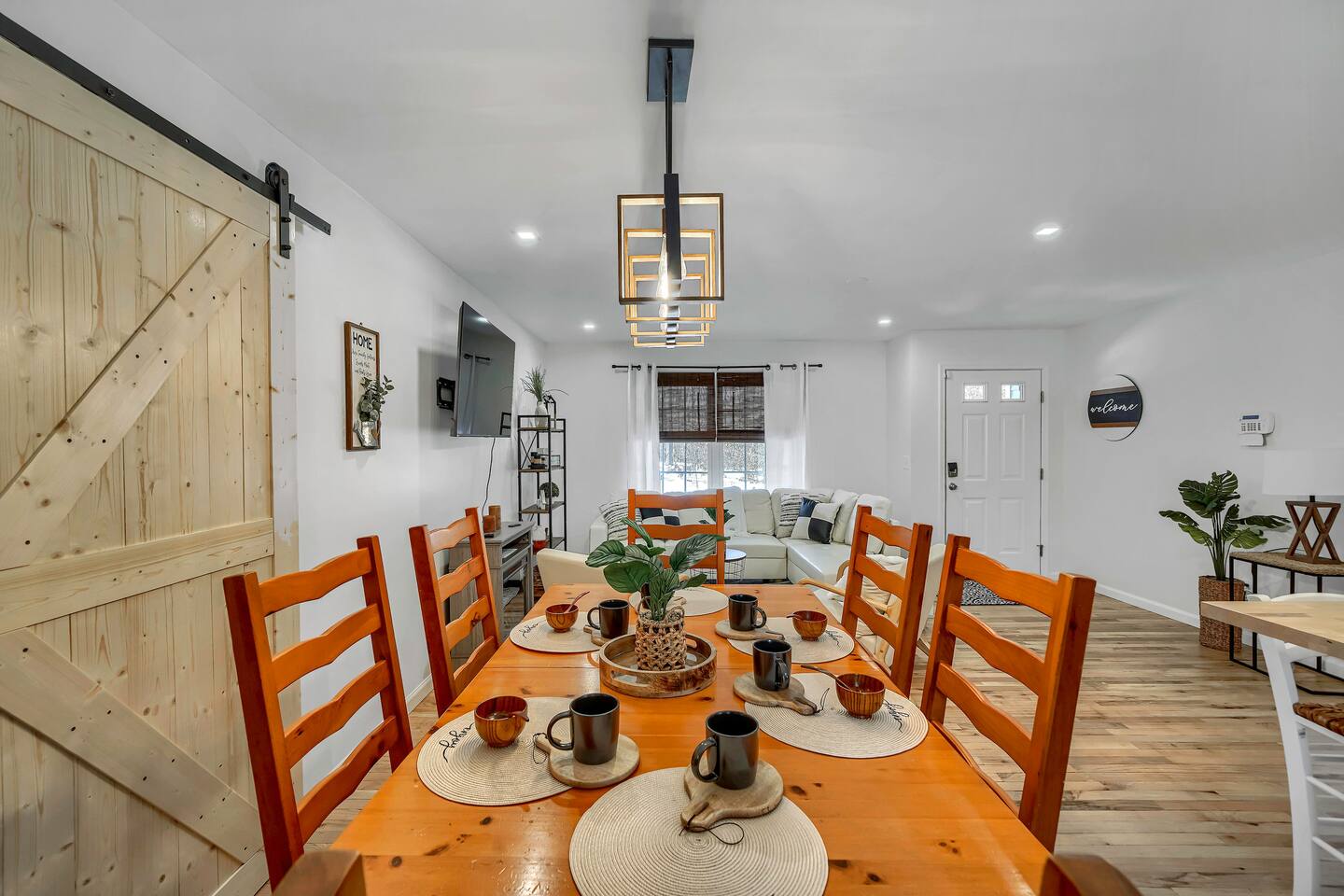 •This home is a nature-lover’s delight. Nestled on a peaceful, serene and private 5-acre property in the mountains of the Lower Hudson Valley, it is where Upstate and Downstate intersect, with the best of both worlds at your fingertip. •Our wonderful home boasts 3 inviting bedrooms - including a master bedroom with a king-sized bed — sleeping a total of 6 people, making it perfect for that long planned trip of family and friends. Each room boasts a smart TV, with the living room area boasting a large screen for joint viewing. •Beautifully remodeled (2021) in a welcoming farmhouse style — both in layout and related decor — this home and surrounding property invite you to get away without getting too far away. The spacious property is surrounded by greenery in the summer and white snow in the winter, with neighbors far out of sight and out of mind. •The private acreage outdoors has a large deck to accommodate all, with an all-season outdoor hot tub and jacuzzi. Summertime, it serves as the place to spend your vacation in nature’s warm embrace. •The property is a one-hour-drive from NYC; less than ten miles from the new Legoland New York resort; in the vicinity of the popular Woodbury Commons mall; minutes from Mt. Peter Ski Area; near Sterling Forest State park, with the famed Appalachian Trail passing right nearby; with many more recreation and dining options nearby.